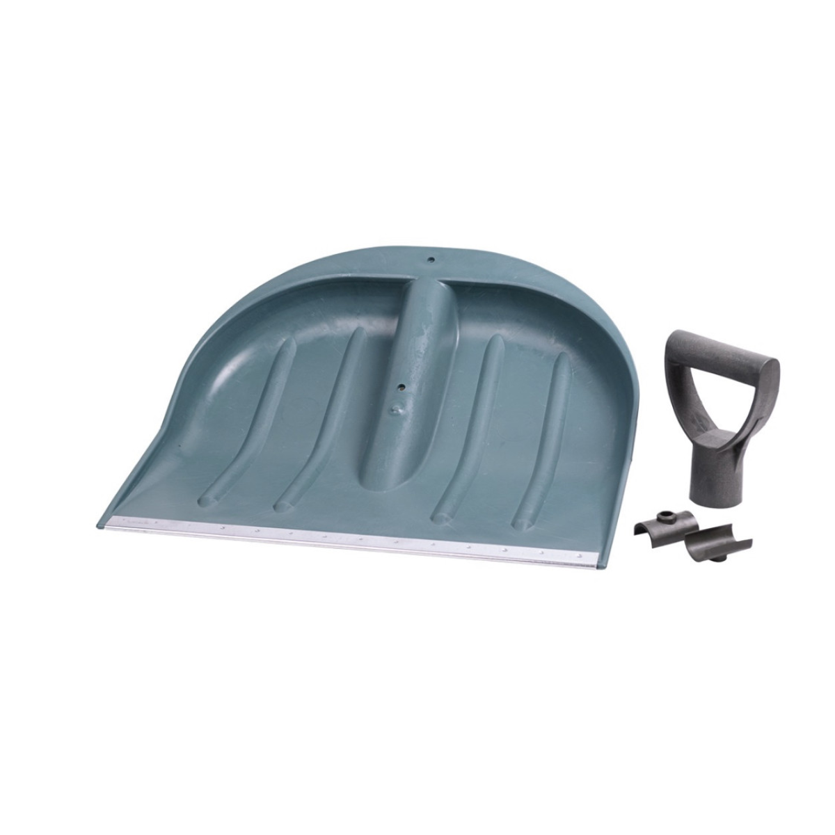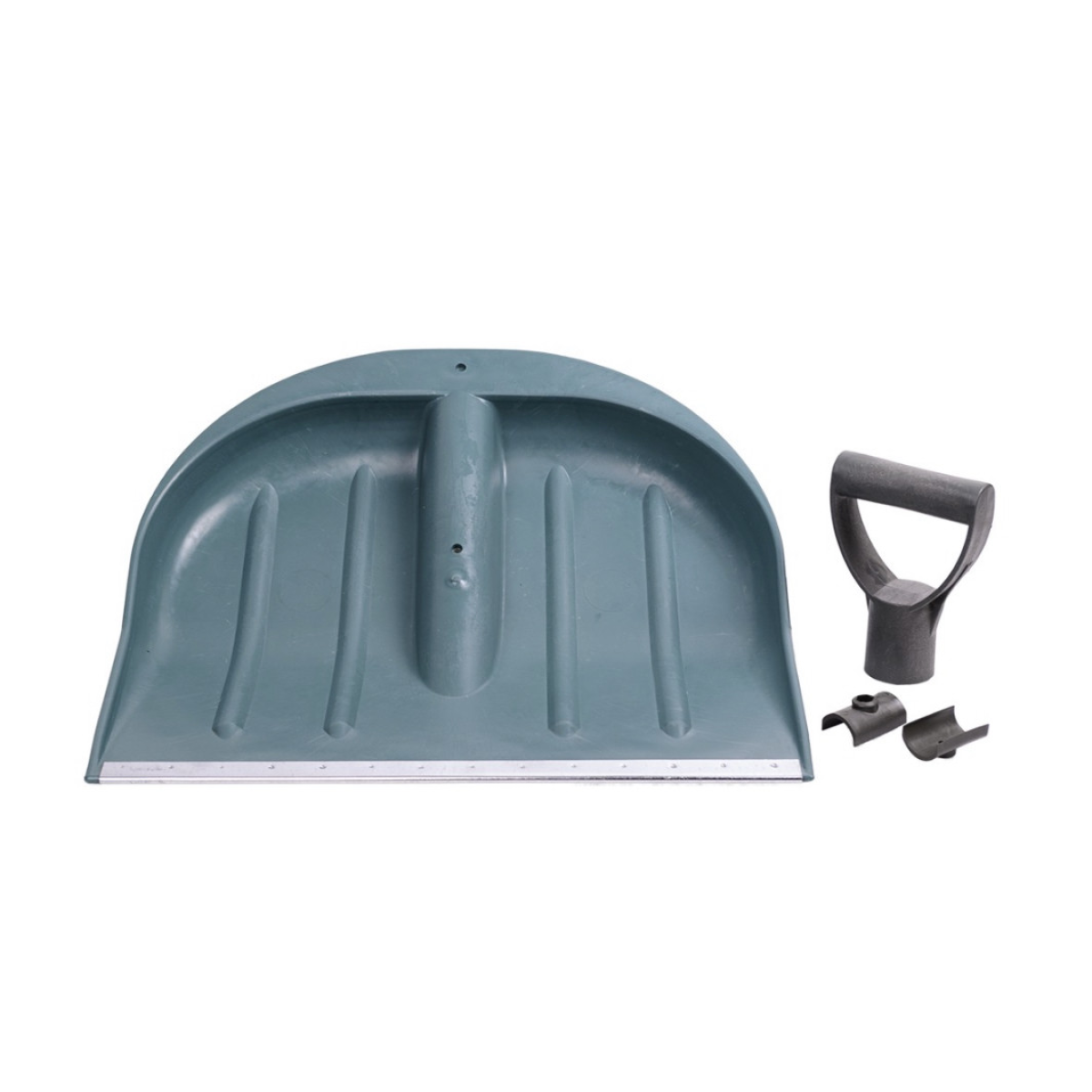 Широкий совок лопати має жолоб з отвором для кріплення круглого держака. Край совка лопати окантован металом, для зручності використання та продовження терміну експлуатації. Дерево не входить до складу снігоприбиральні лопати, але його можна придбати в будь-якому господарському магазині та легко прикріпити. Доповненням до лопати, є пластикова ручка, виготовлена з міцної високоякісної пластмаси. Ручка легка, гладка та дуже зручна для захоплення рукою. Також у ній є отвір для кріплення до деревини. Якість сировини, з якої виготовлена снігова лопата, дає можливість довго та надійно використовувати цей нехитрий, але дуже потрібний інструмент для прибирання снігу. За допомогою лопати снігоприбирального, можна не тільки легко прибрати сніг із найбільш важкодоступних куточків Вашого саду або двору, але ще й допомогти Вашим дітям, зліпити сніговика, побудувати гірку зі снігу, або облаштувати крижану коток. Цей снігоприбиральний інвентар є необхідним атрибутом домашнього господарства. Також лопата снігова є незамінним допоміжним снігоприбиральним інвентарем для комунальних підприємств ШКХ, для прибирання снігу у важкодоступних місцях у дворах шкіл, дитячих садків, медудоріжджів та ін.
