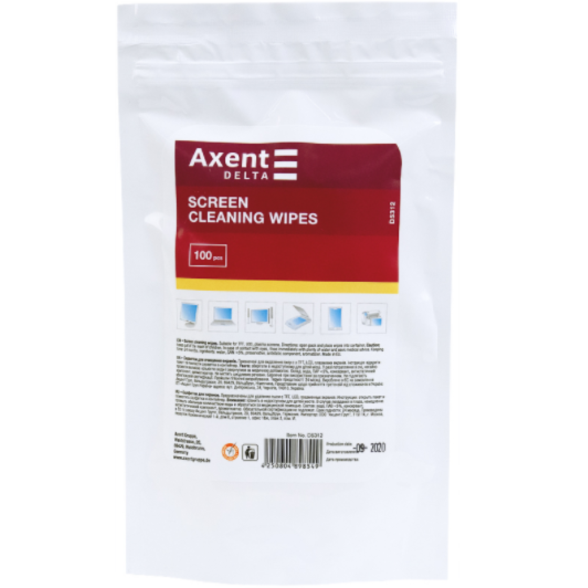 Серветки для екранів вологі Axent Delta D5312, змінні, 100 штук